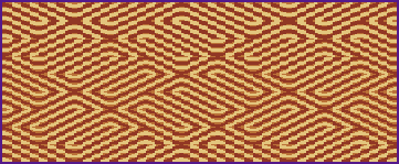 Some card weaving patterns can be adapted for weaving on multi-shaft looms and loom patterns can be adapted to card weaving. Many of the patterns on this page have been inspired by 8- and 10-shaft twills. Using two colors, light and dark, all cards for the patterns on this page have been threaded with a light color in hole 1 and 3, a darker color in 2 and 4.